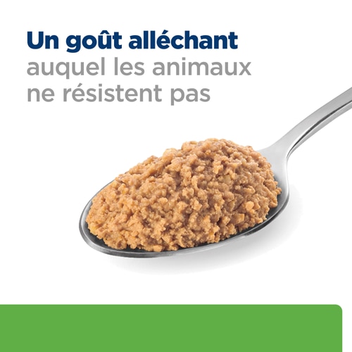 Les nutritionnistes et les vétérinaires de Hill's ont développé les aliments diététiques pour animaux Prescription Diet Metabolic + Mobility spécialement formulés pour favoriser la gestion du poids et la santé des articulations de votre animal. Cette alimentation fonctionne naturellement avec l'utilisation unique de l'énergie de votre chien pour une perte de poids facile et efficace et peut être utilisée à long terme. En effet, Prescription Diet Metabolic + Mobility est une nutrition cliniquement prouvée pour aider les chiens à perdre naturellement du poids et à améliorer leur mobilité en seulement 21 jours. Cette pâtée a une irrésistible saveur de poulet que votre chien va adorer.